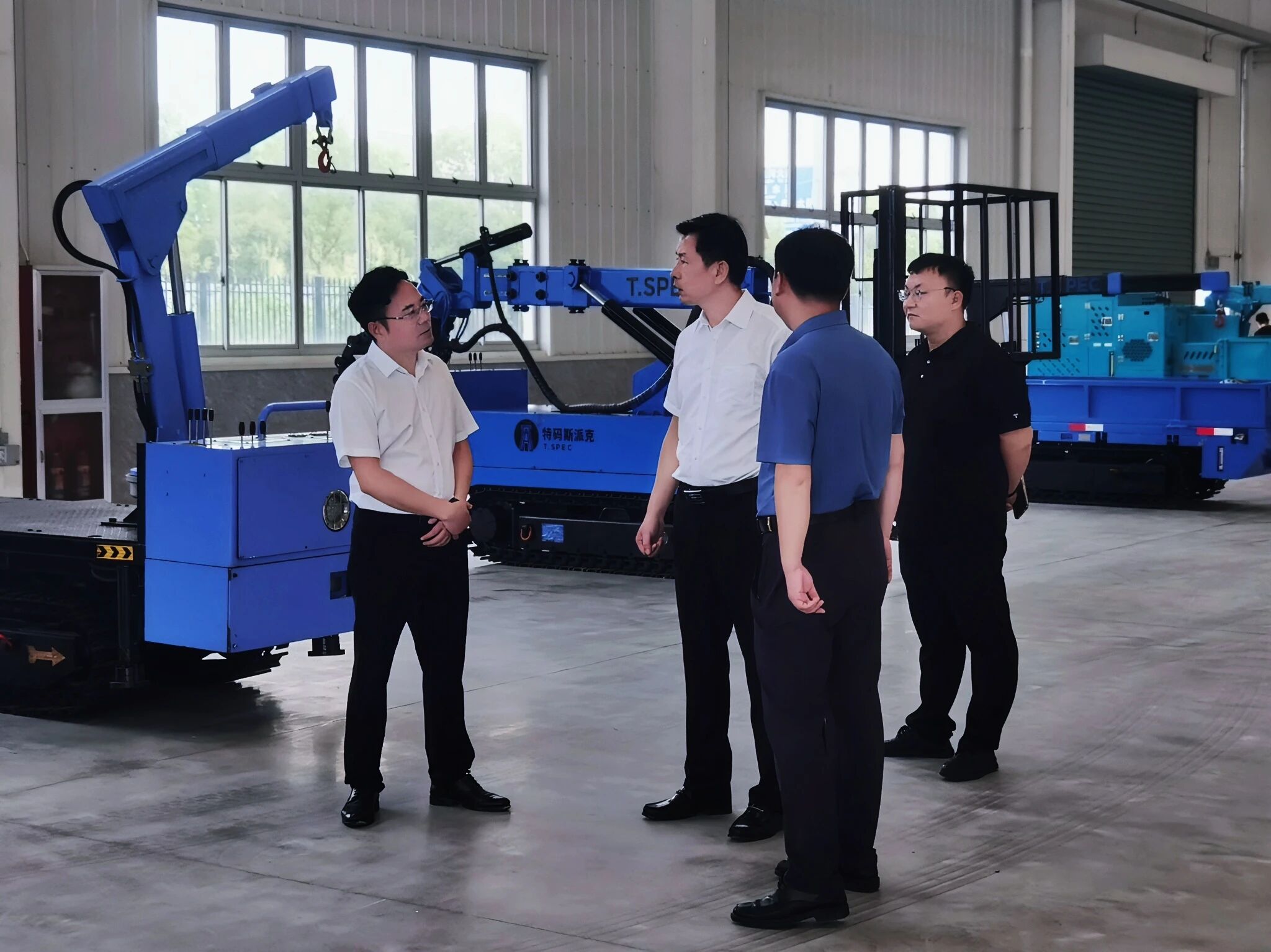 调研中,领导重点考察了厂区建设进展,详细了解了矿山应急智能化装备。中感·特码斯派克陈天宝董事长现场介绍了公司核心装备,并阐述了这些装备的生产工艺、技术特点及其在矿山安全生产中的实际应用。公司致力于矿山灾害监测预警系统研发和灾害防治,在提升矿山应急响应能力与保障人员安全方面成果突出。