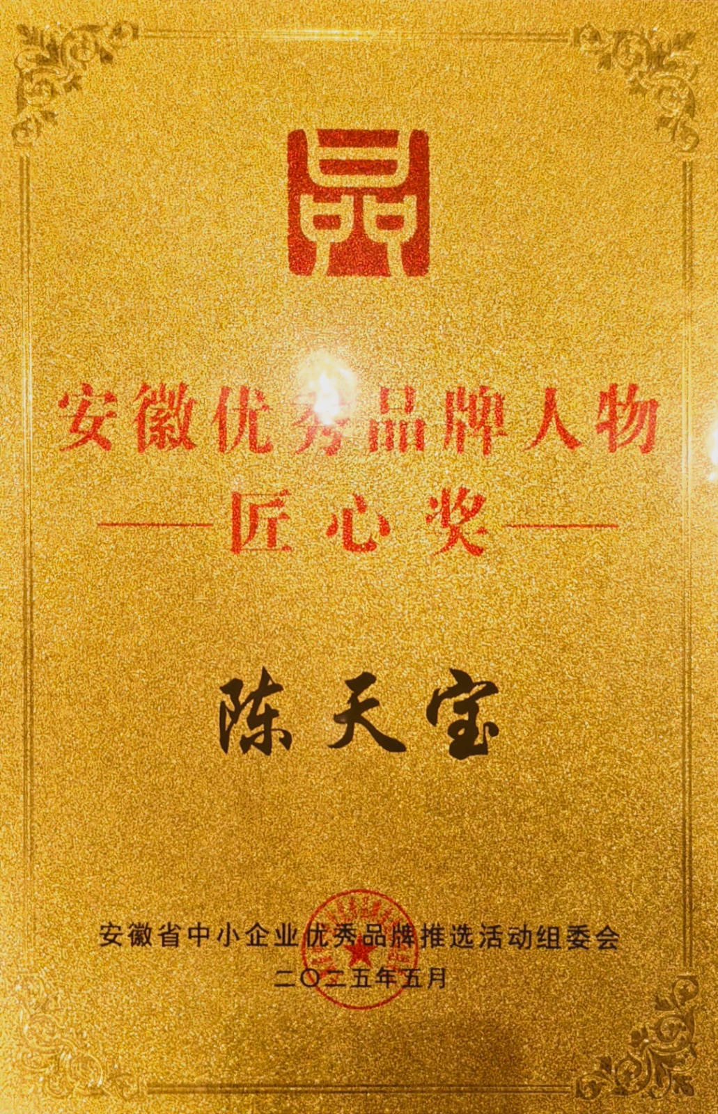 中国品牌日安徽品牌传播交流大会上,获“安徽优秀品牌企业·创新奖”,董事长陈天宝获“安徽优秀品牌人物·匠心奖”。