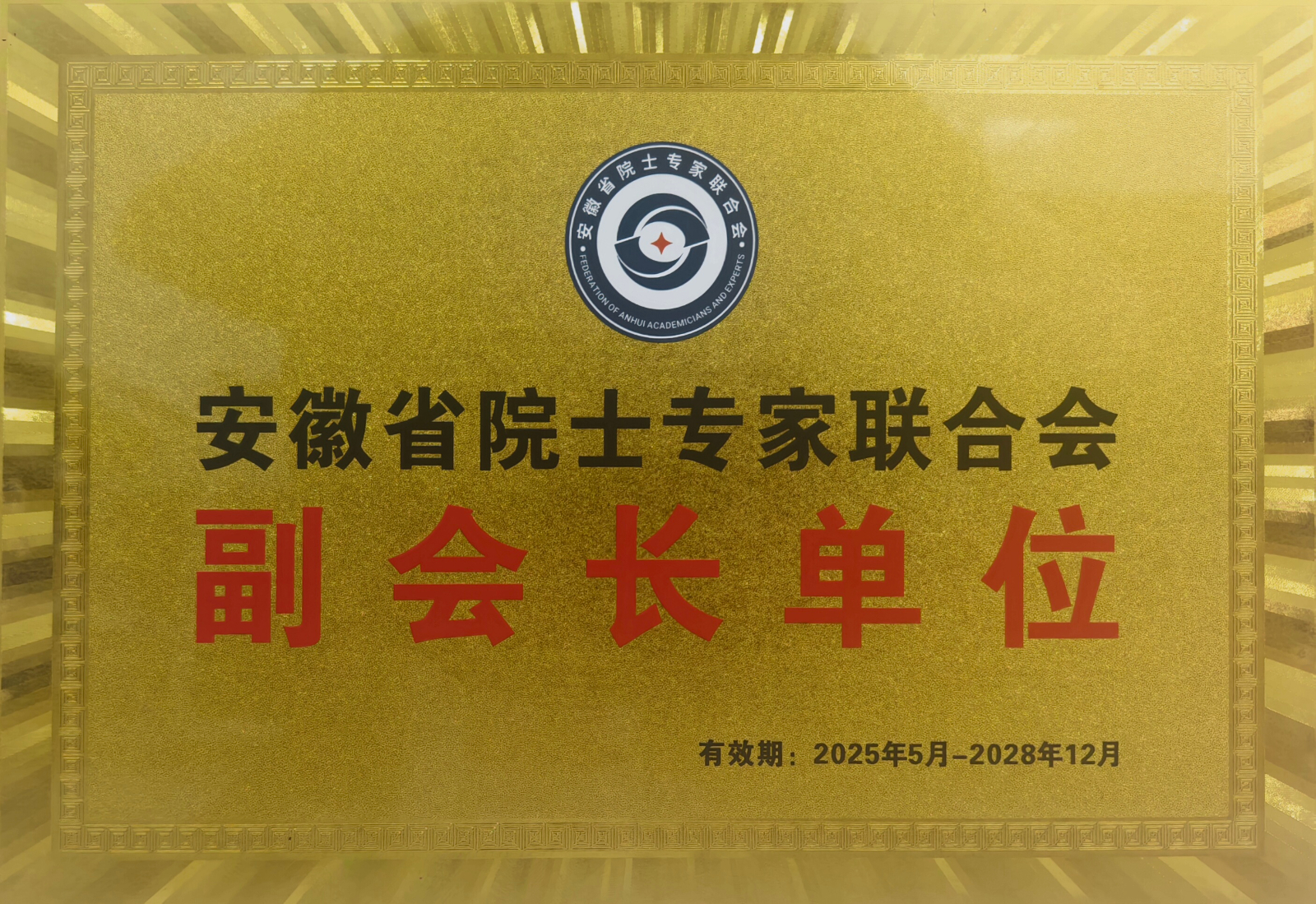 获授“安徽省院士专家联合会副会长单位”。