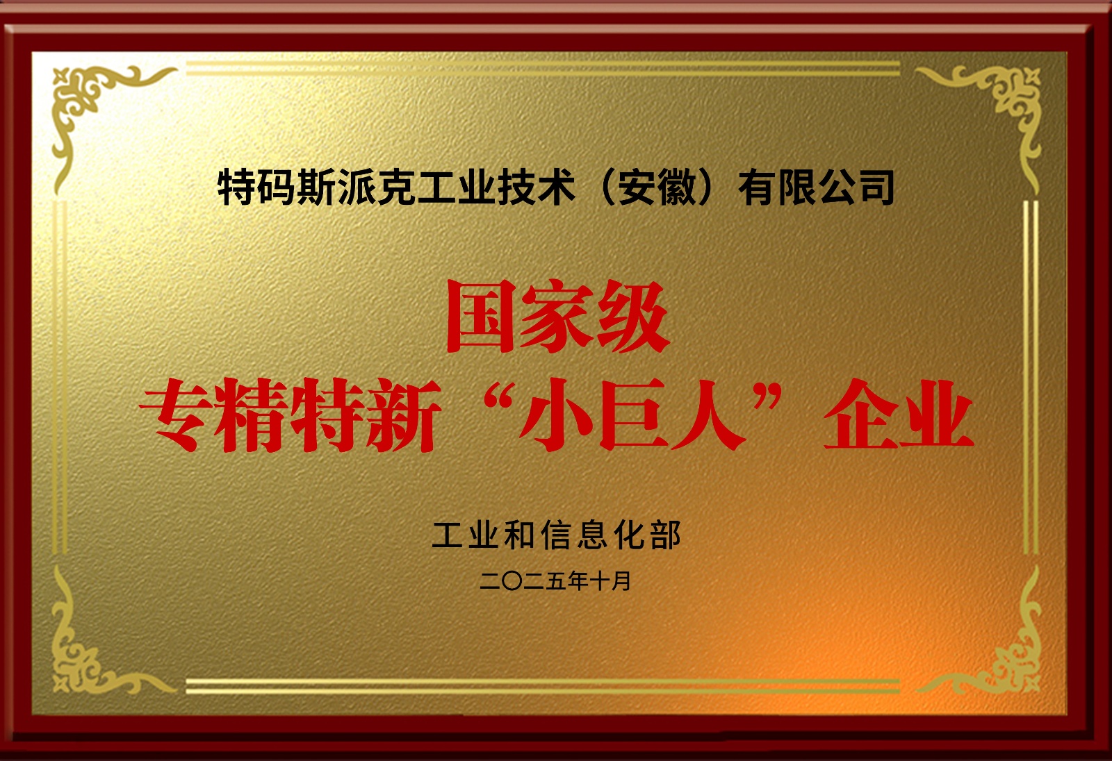 公司荣获国家专精特新“小巨人”企业称号。