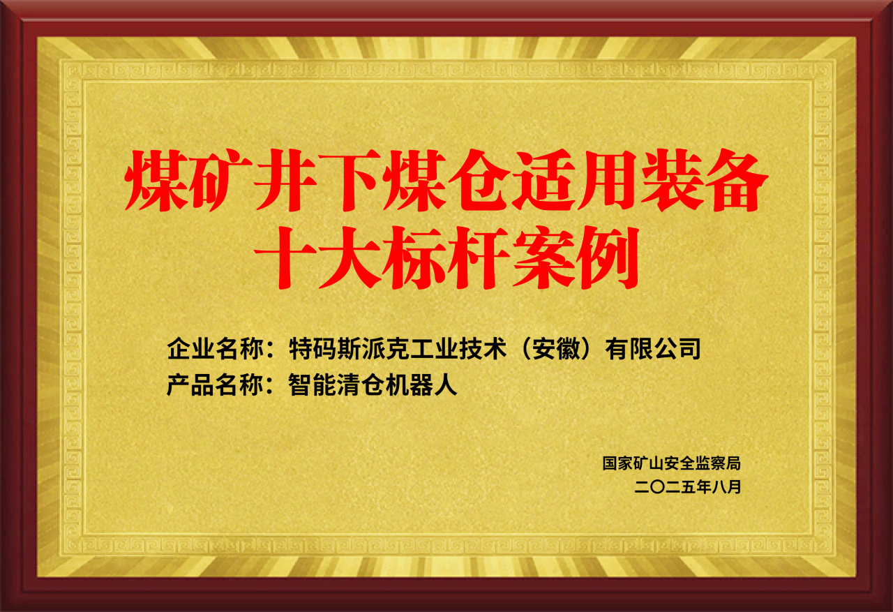 智能清仓机器人入选国家矿山安全监察局煤矿井下煤仓适用装备“十大标杆案例”