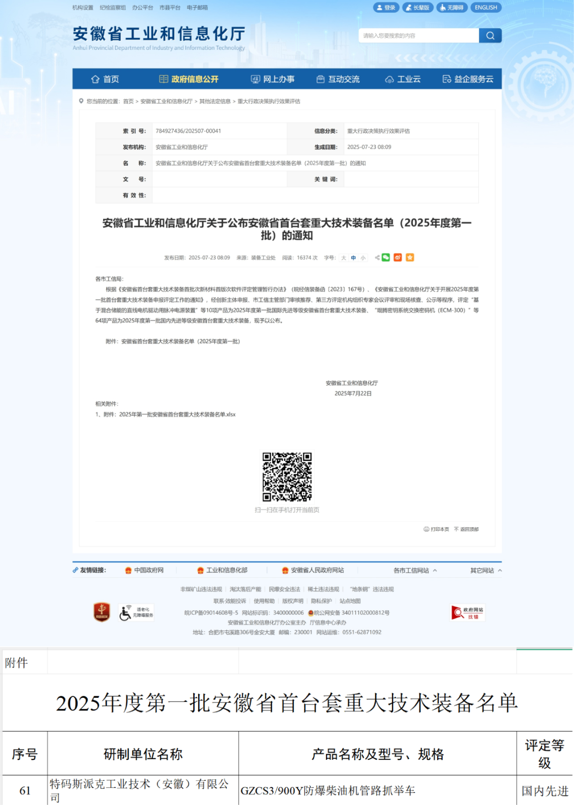 七月,公司研发的防爆柴油机管路抓举车被认定为2025年度第一批安徽省首台套重大技术装备,技术等级达“国内先进”。